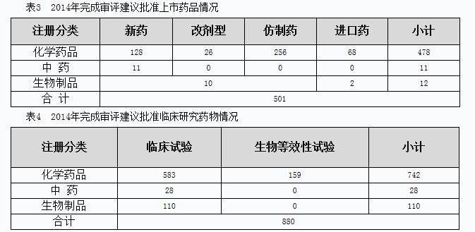 2014年,药审中心完成审评建议国家总局批准上市和批准临床研究的情况见表3、表4